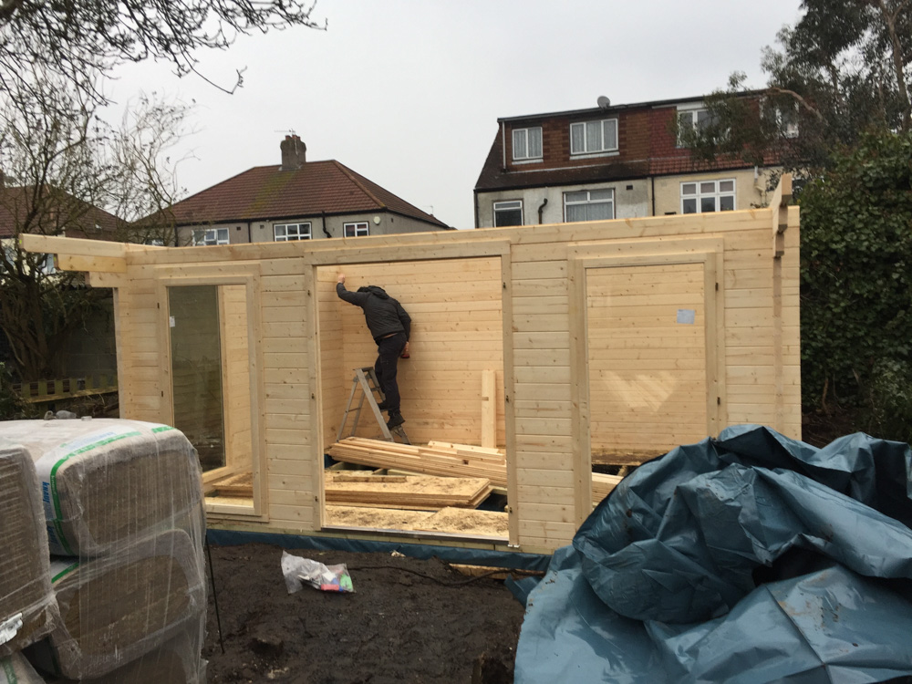 Once all the parts had been moved to the build site, erection was simple. Make sure the foundation timbers were screwed in place, make sure the damp proof layer is all present and correct, begin the build.