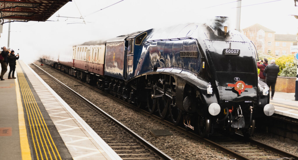 As we waited for a taxi, there was an announcement on the platform tannoy: the “Sir Nigel Gresley” would be going past in the next 15 minutes. This explained the abundance of train nerds milling about on the platform. I’m not going to lie, I fucking love me a steam train, so I lobbied to wait for the drive by.